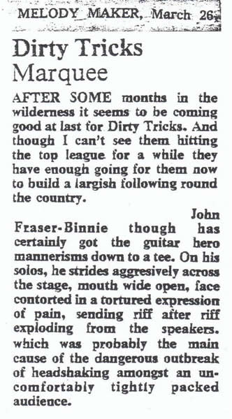 After some months in the wilderness it seems to be coming good at last for Dirty Tricks. And though I can´t see them hitting the top league for a while they have enough going for them now to build a largish following round the country.