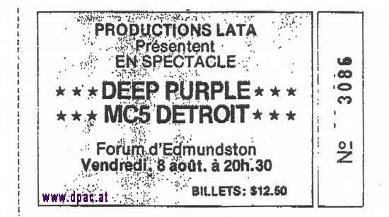 Bogus DEEP PURPLE - Forum d´Edmundston, Brunswick / Canada featuring "MC5 Detroit" - live 08.08.1980Special thanks to Yves Monast for the picture!